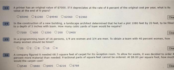 Solved 13 14 A Printer Has An Original Value Of 7000 If It Chegg Com